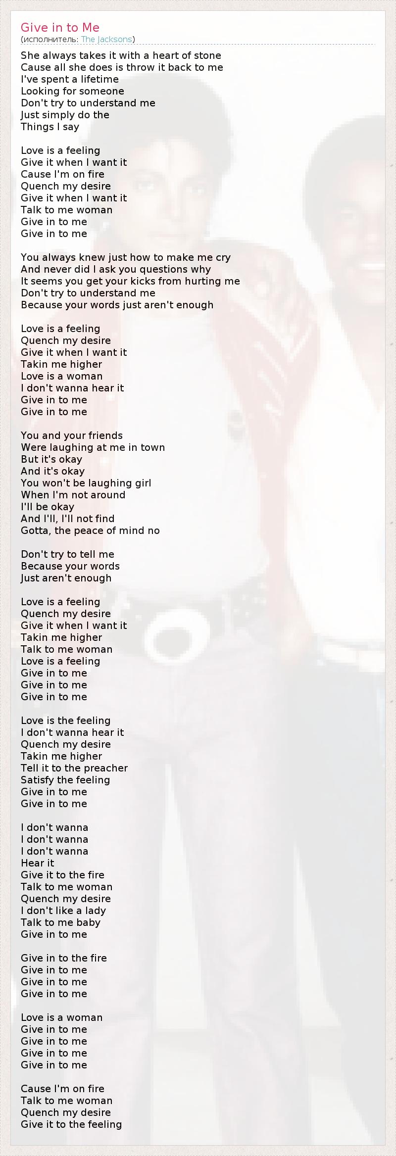А как ты думаешь, о чем песня "Give in to Me" ?