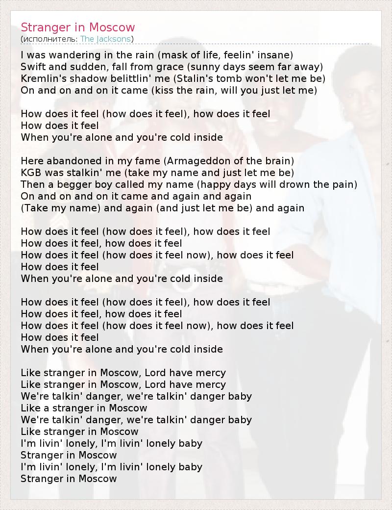 А как ты думаешь, о чем песня "Stranger in Moscow" ?