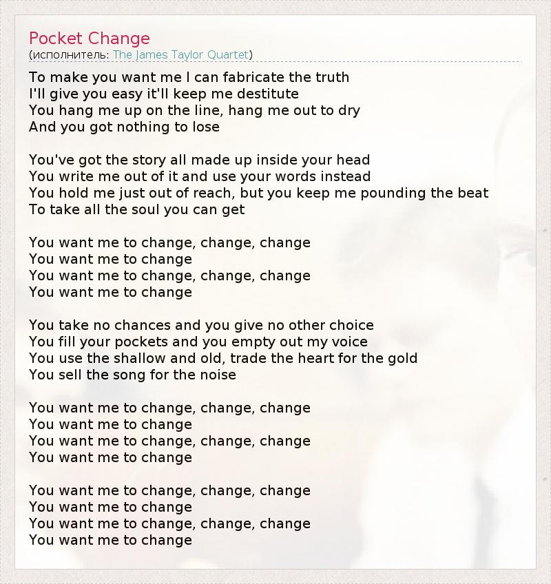 А как ты думаешь, о чем песня "Pocket Change" ?