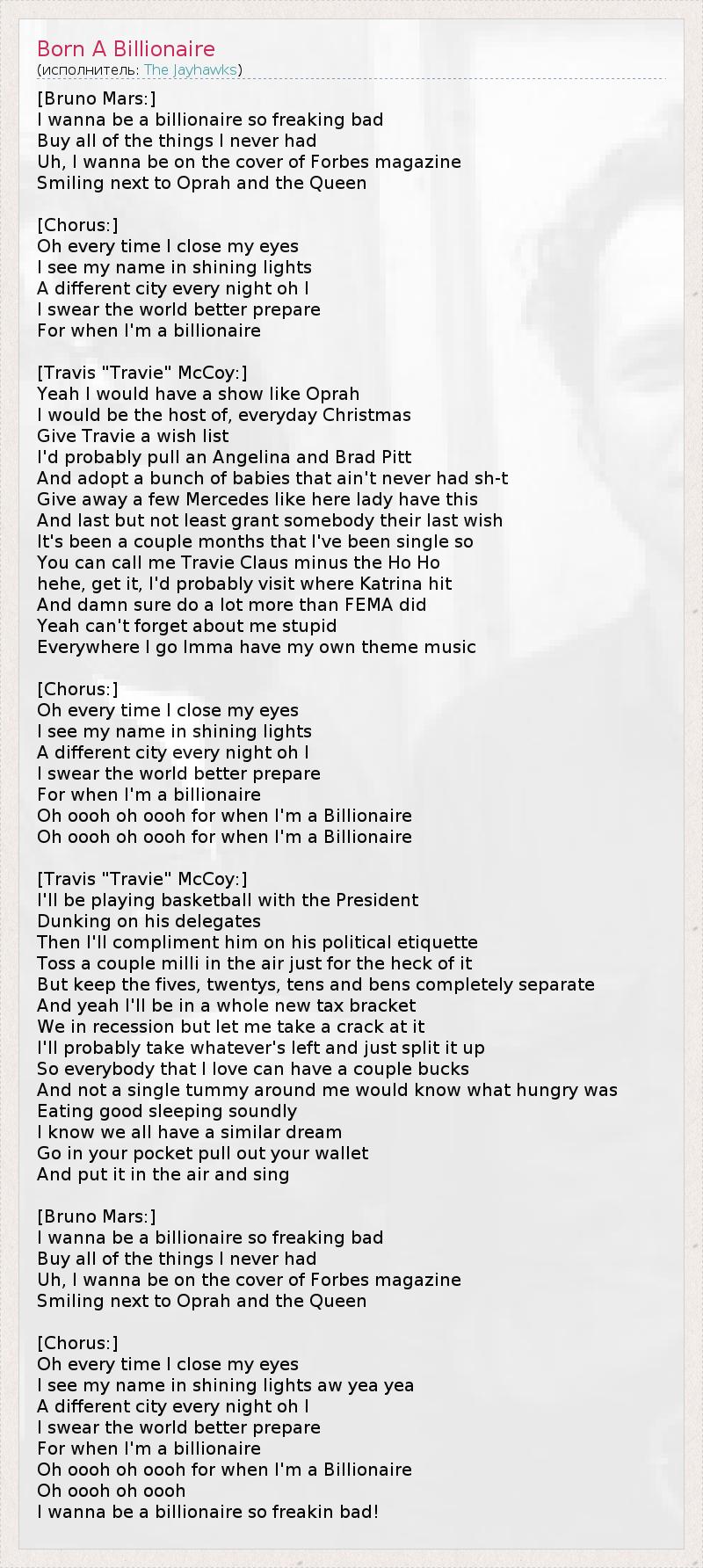 А как ты думаешь, о чем песня "Born A Billionaire" ?