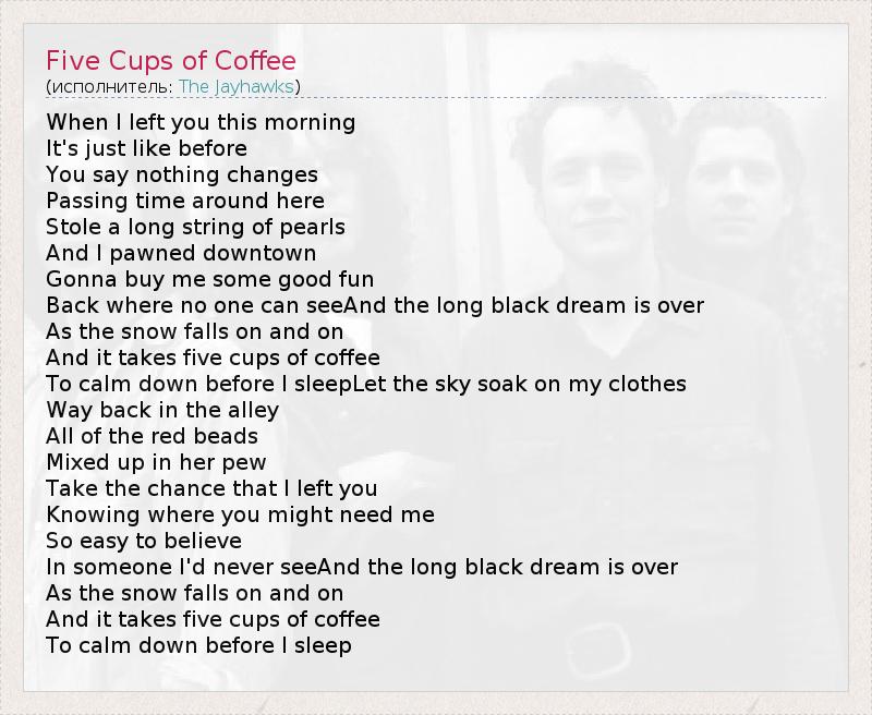А как ты думаешь, о чем песня "Five Cups of Coffee" ?