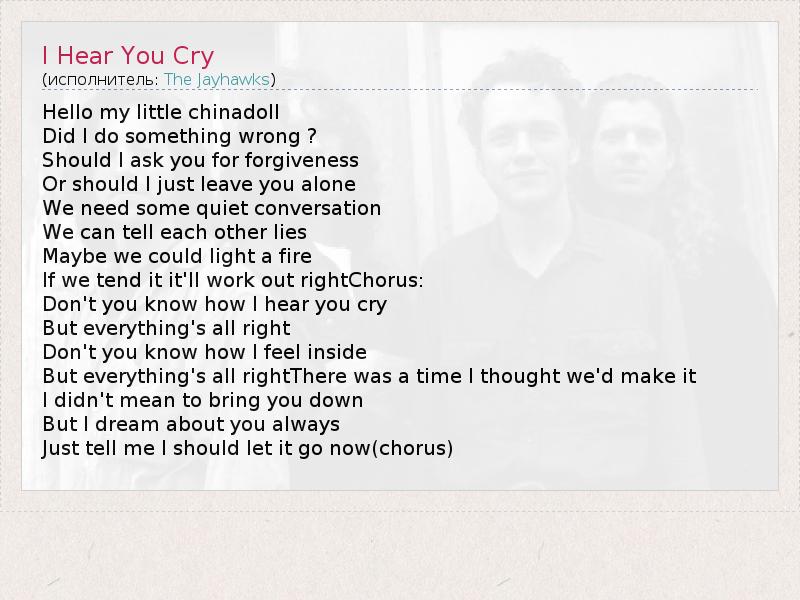 А как ты думаешь, о чем песня "I Hear You Cry" ?