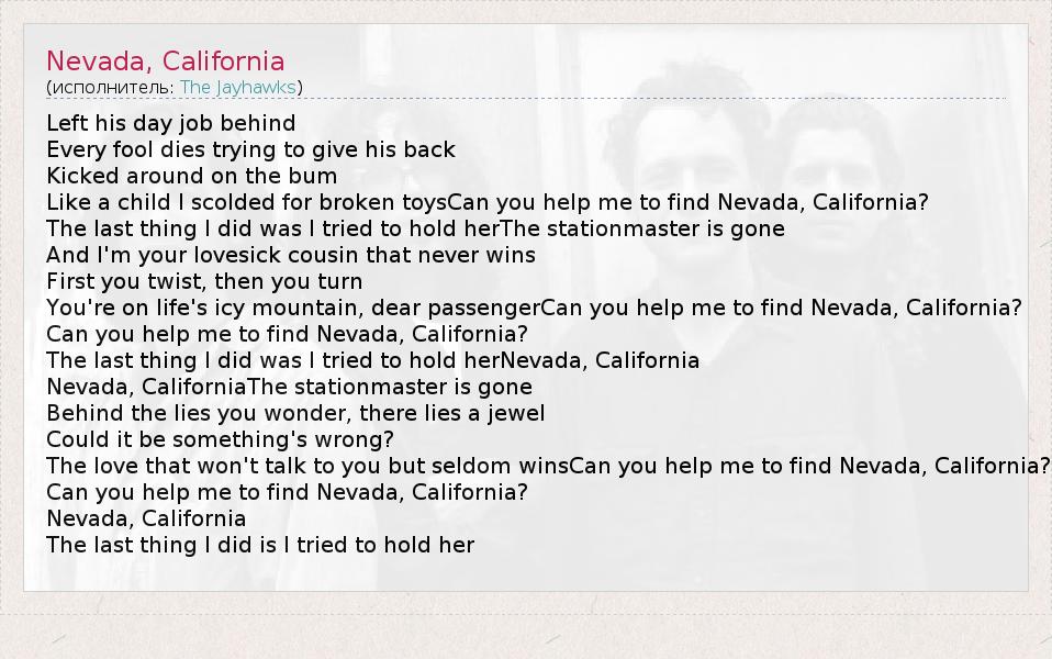 А как ты думаешь, о чем песня "Nevada, California" ?