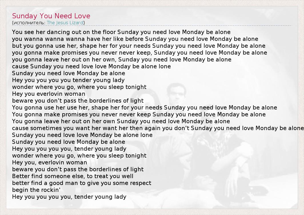 А как ты думаешь, о чем песня "Sunday You Need Love" ?