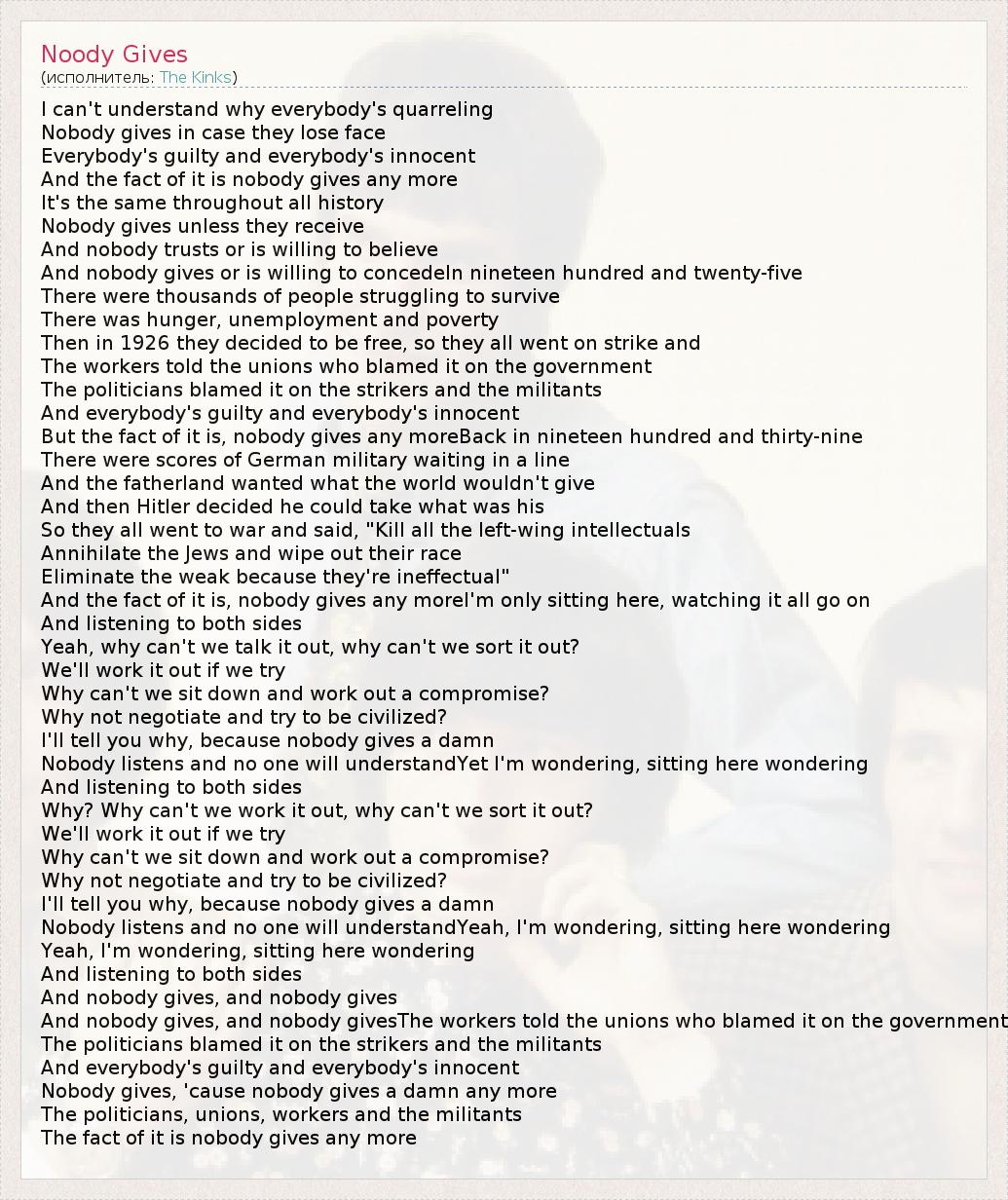А как ты думаешь, о чем песня "Noody Gives" ?