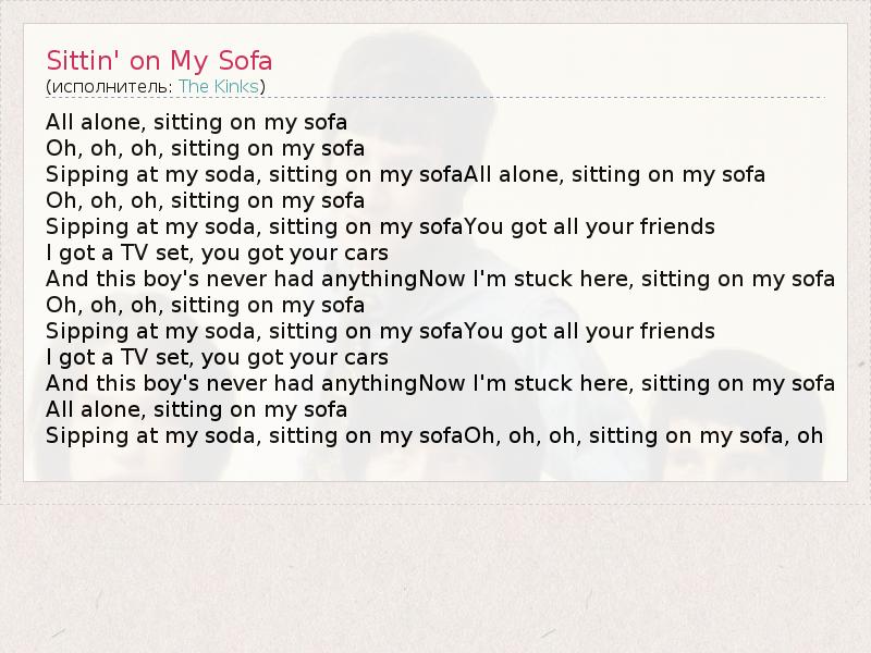 А как ты думаешь, о чем песня "Sittin' on My Sofa" ?
