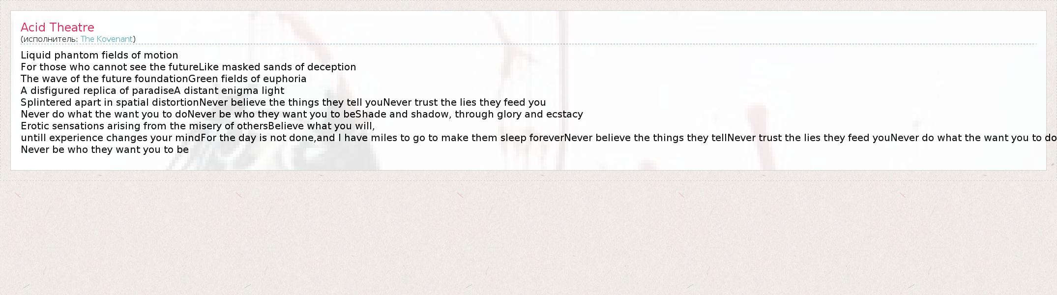 А как ты думаешь, о чем песня "Acid Theatre" ?