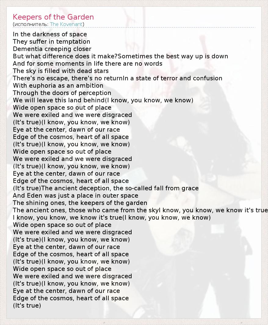 А как ты думаешь, о чем песня "Keepers of the Garden" ?
