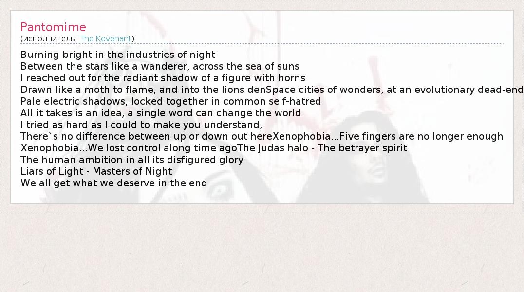 А как ты думаешь, о чем песня "Pantomime" ?