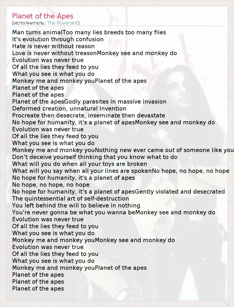 А как ты думаешь, о чем песня "Planet of the Apes" ?