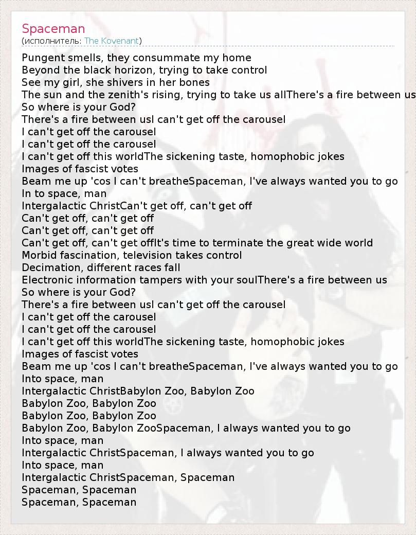 Beam me up 'cos I can't breatheSpaceman, I've always wanted you to go