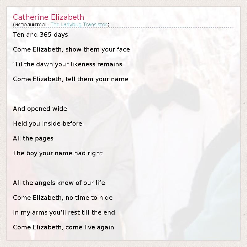 А как ты думаешь, о чем песня "Catherine Elizabeth" ?