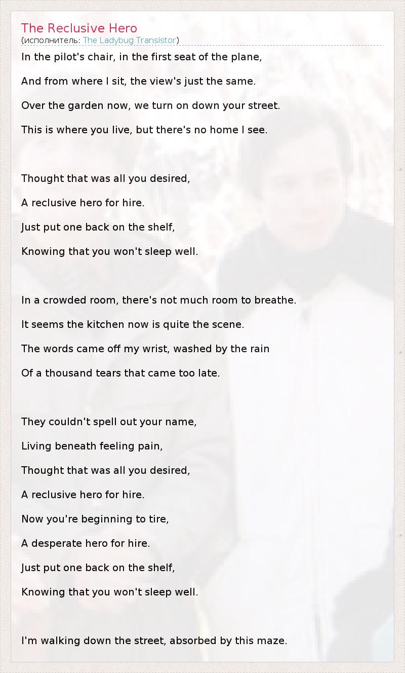 А как ты думаешь, о чем песня "The Reclusive Hero" ?