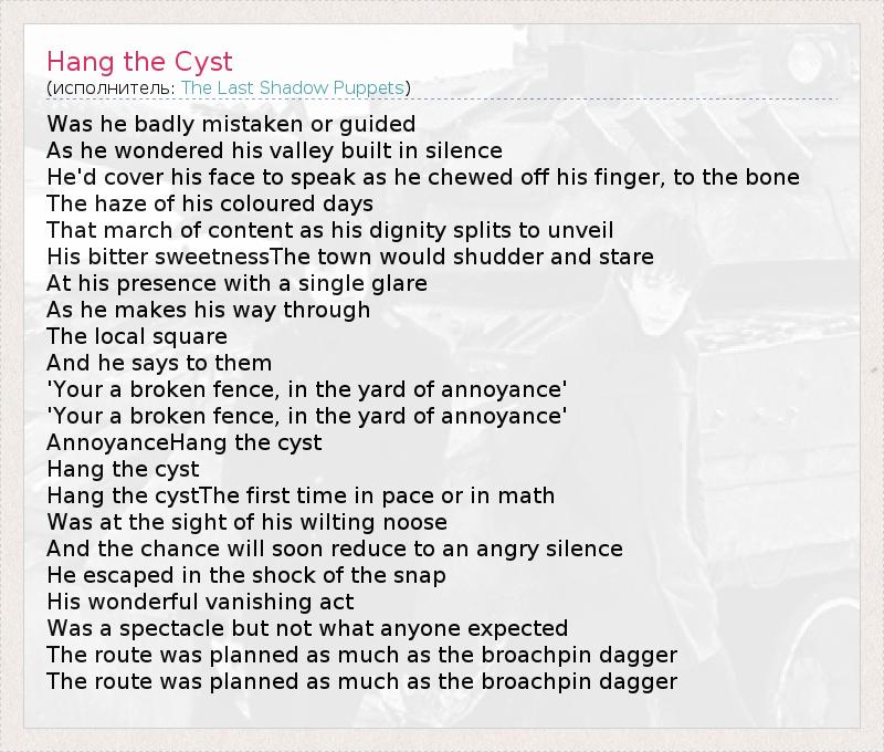 А как ты думаешь, о чем песня "Hang the Cyst" ?