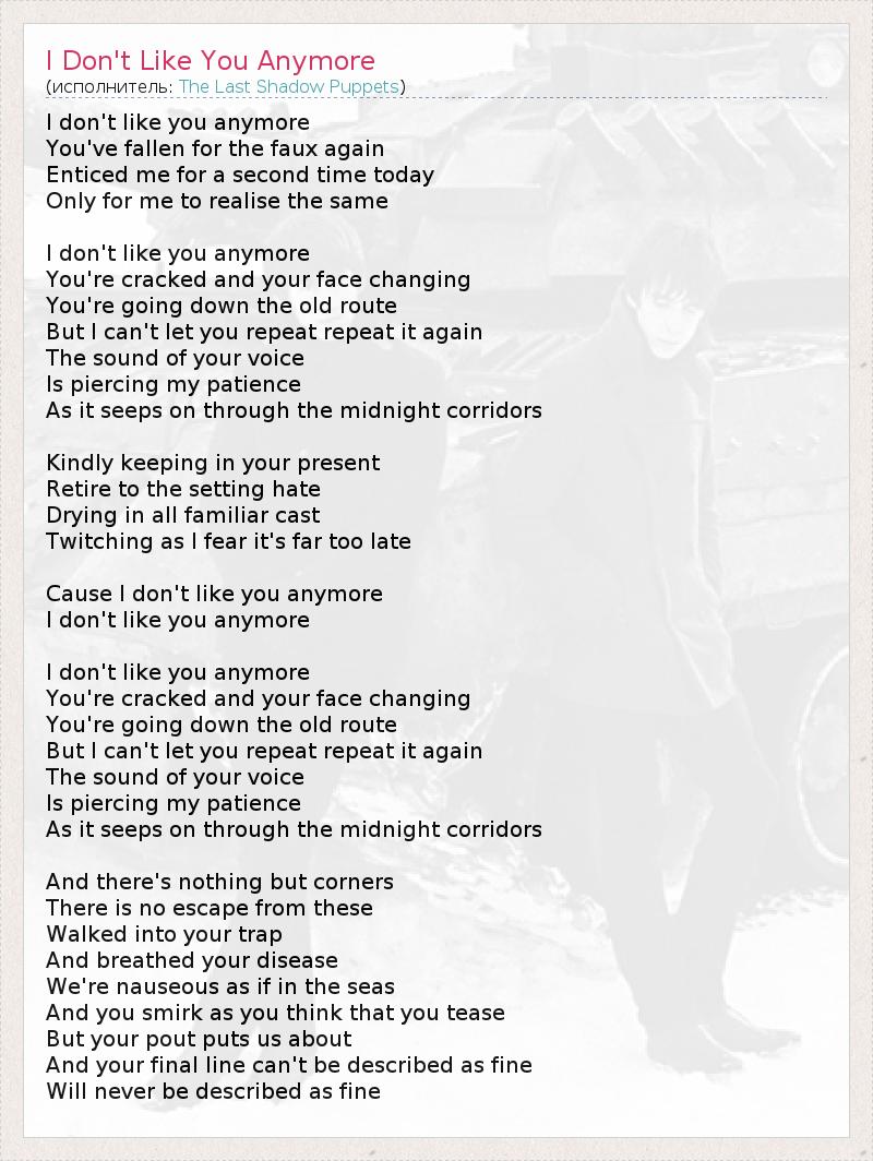 А как ты думаешь, о чем песня "I Don't Like You Anymore" ?