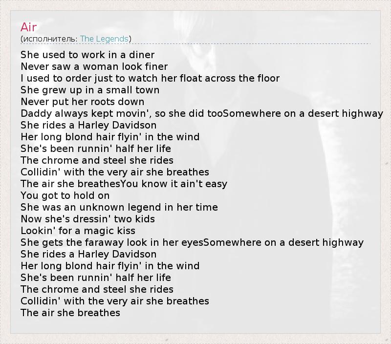 She gets the faraway look in her eyesSomewhere on a desert highway