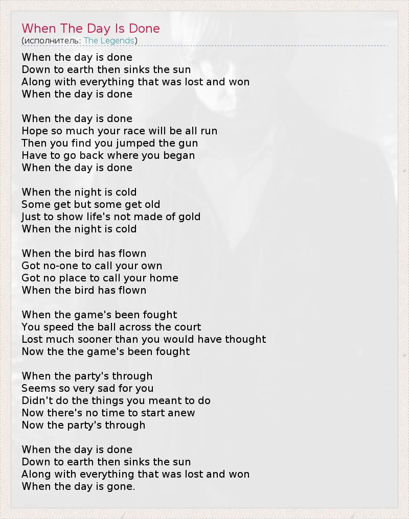 А как ты думаешь, о чем песня "When The Day Is Done" ?