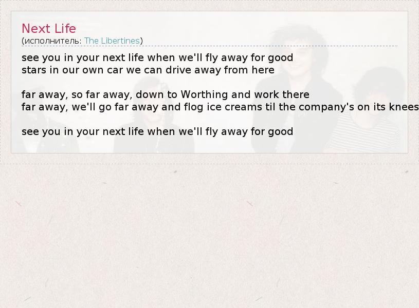 Это интересно:Участники группы The Libertines - англичане, играющие в стиле punk revival. Группа сформировалась в Великобритании, Лондон в 1997 и распалась в 2004 . Позже они воссоединились в 2010 , чтобы участвовать в Reading и Leeds festivals. В 2014 году после очередного ряда выступлений группа сообщила об окончательном воссоединении и планах выпустить новую пластинку. Группа выпустила два... продолжение