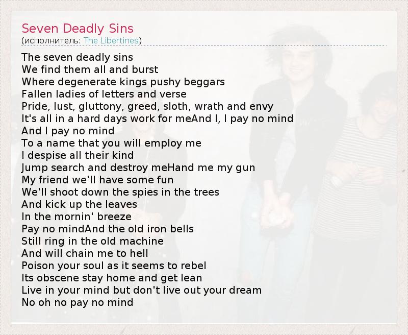 А как ты думаешь, о чем песня "Seven Deadly Sins" ?