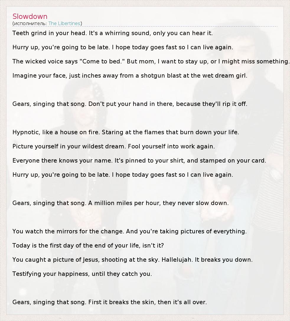 Gears, singing that song. First it breaks the skin, then it's all over.