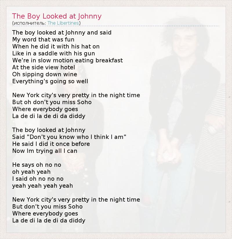 А как ты думаешь, о чем песня "The Boy Looked at Johnny" ?