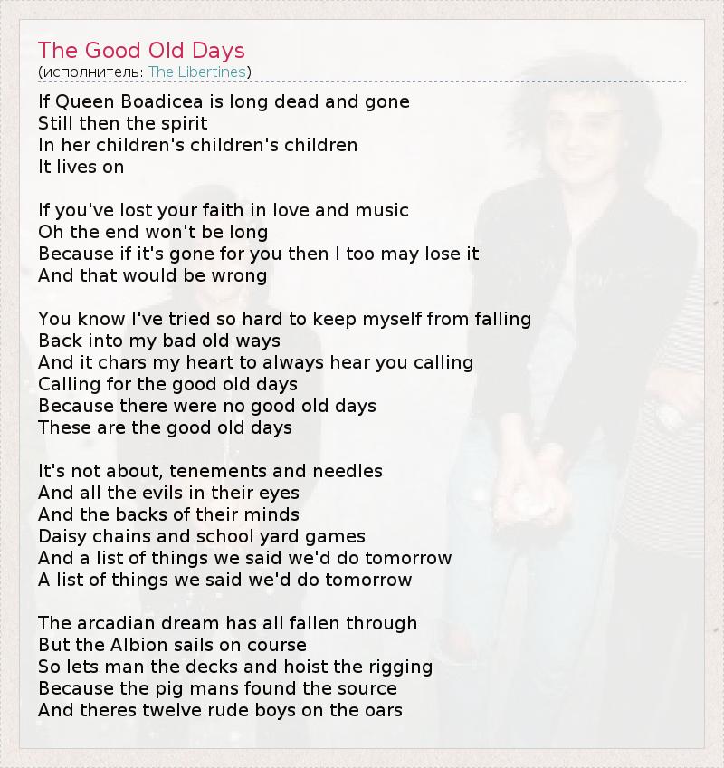 А как ты думаешь, о чем песня "The Good Old Days" ?