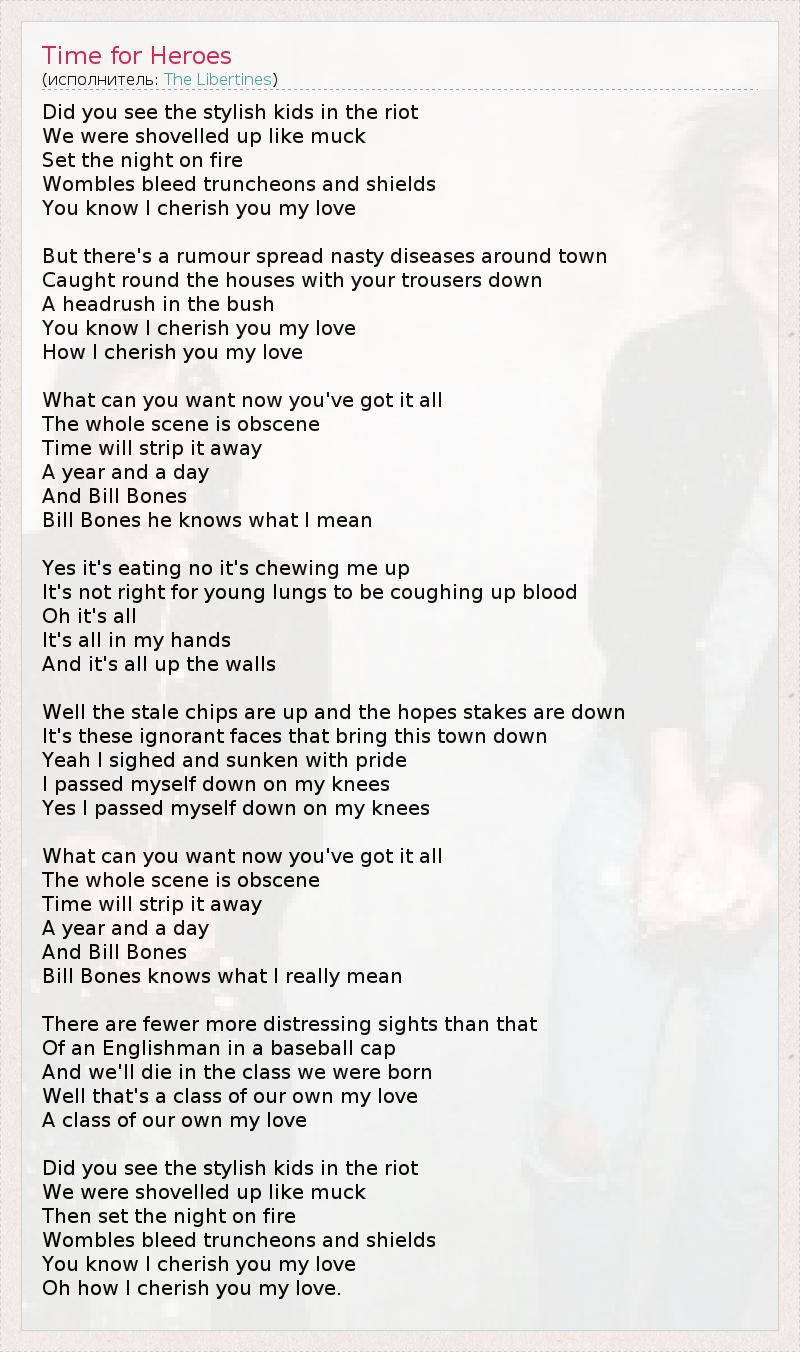 А как ты думаешь, о чем песня "Time for Heroes" ?