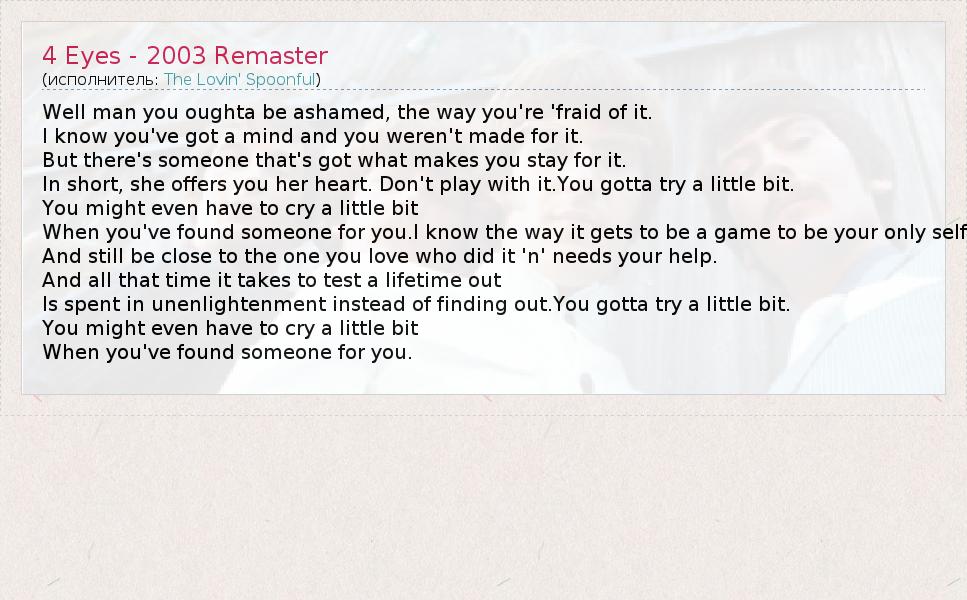 А как ты думаешь, о чем песня "4 Eyes - 2003 Remaster" ?