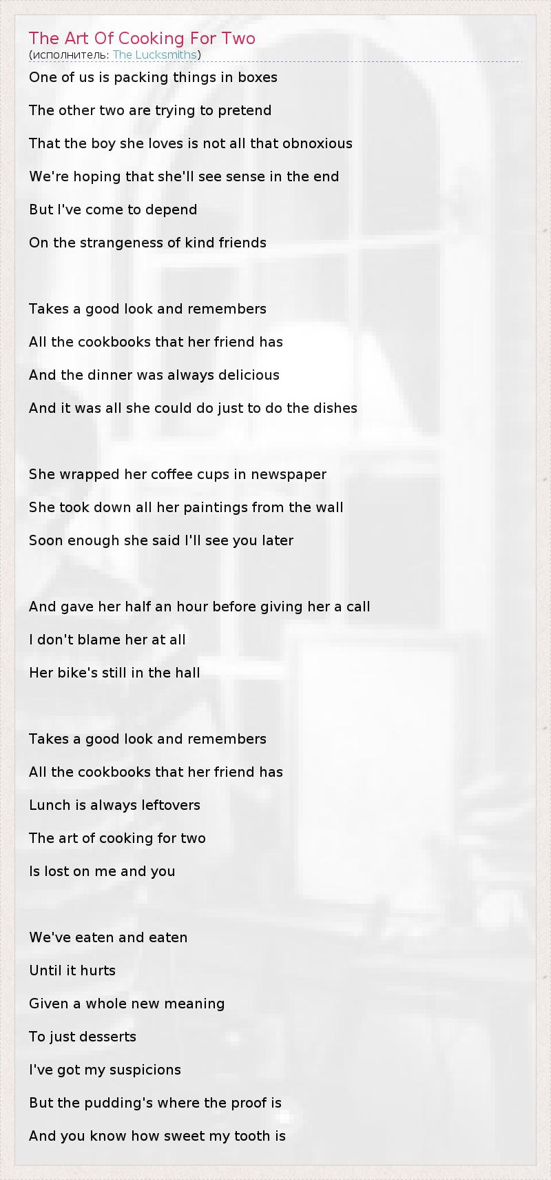 А как ты думаешь, о чем песня "The Art Of Cooking For Two" ?