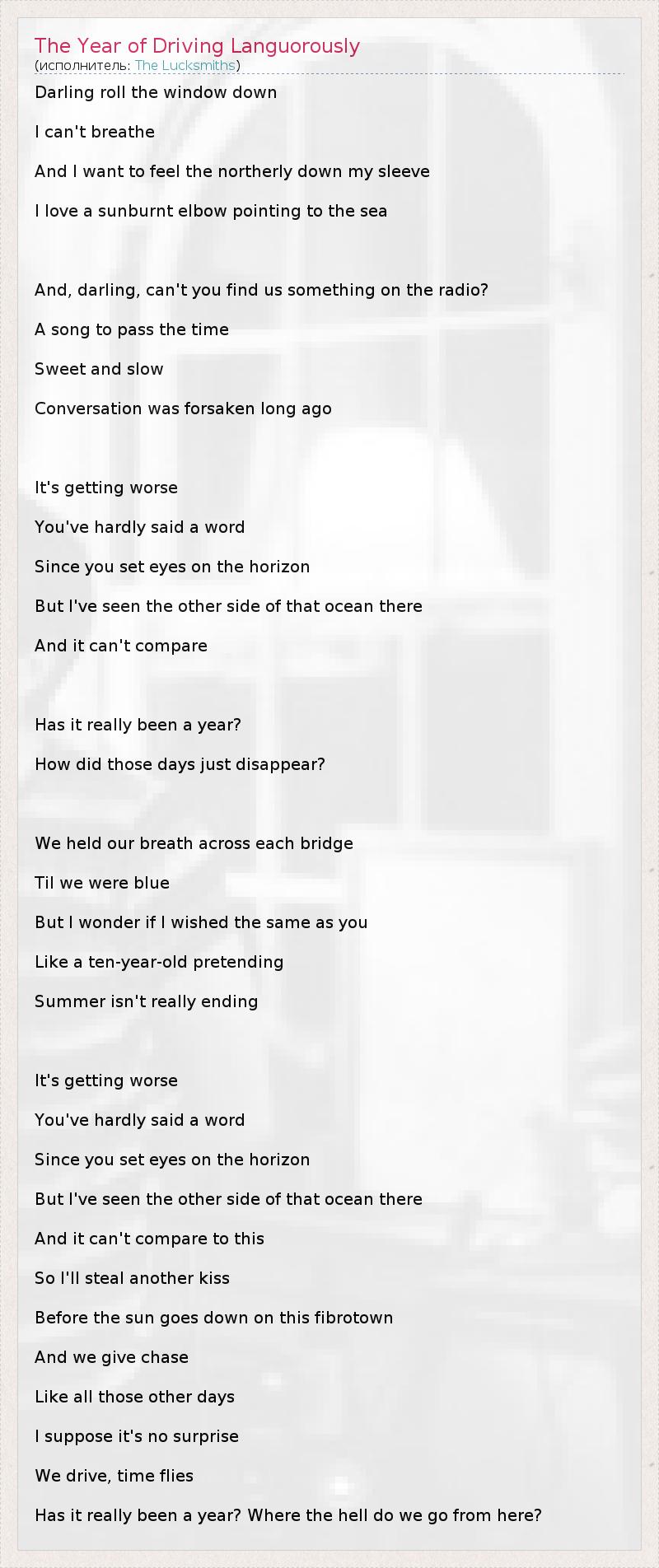 А как ты думаешь, о чем песня "The Year of Driving Languorously" ?
