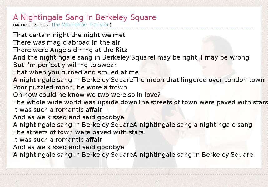 А как ты думаешь, о чем песня "A Nightingale Sang In Berkeley Square" ?