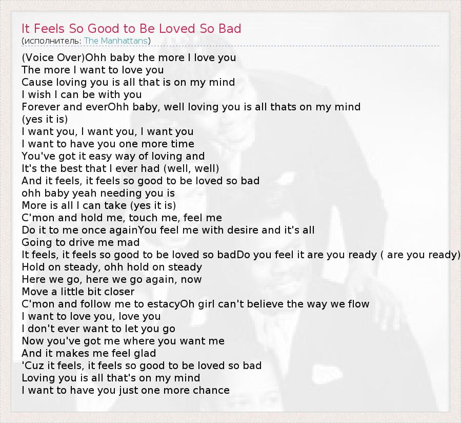 ГлавнаяИсполнителиThe ManhattansIt Feels So Good to Be Loved So Bad