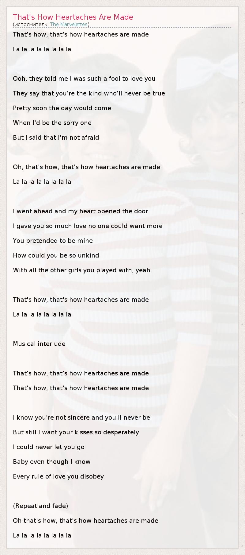 А как ты думаешь, о чем песня "That's How Heartaches Are Made" ?