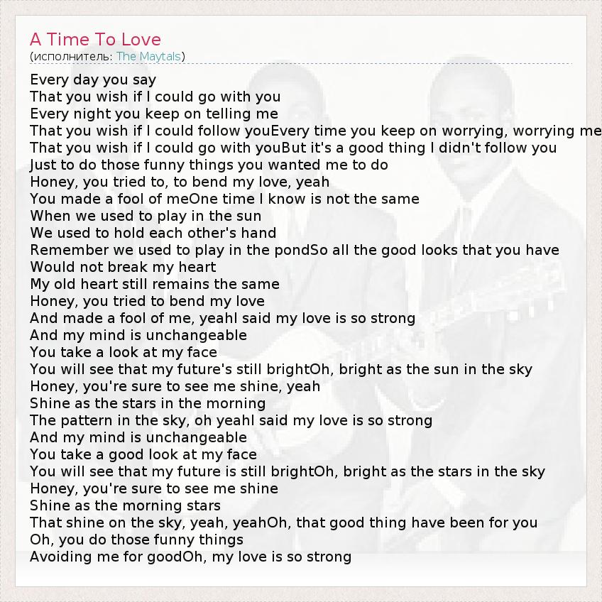 А как ты думаешь, о чем песня "A Time To Love" ?
