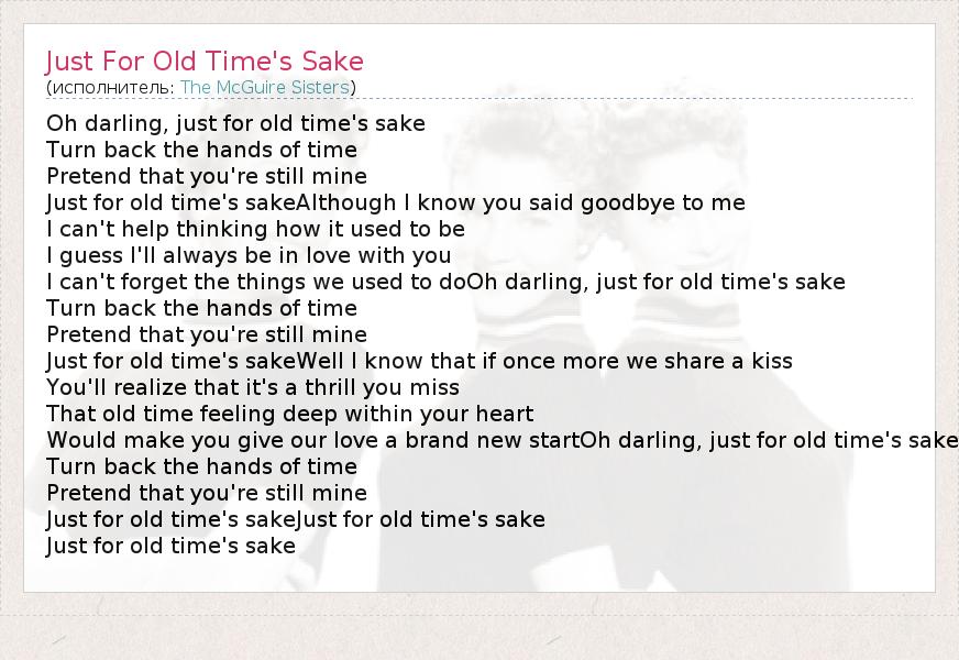 А как ты думаешь, о чем песня "Just For Old Time's Sake" ?