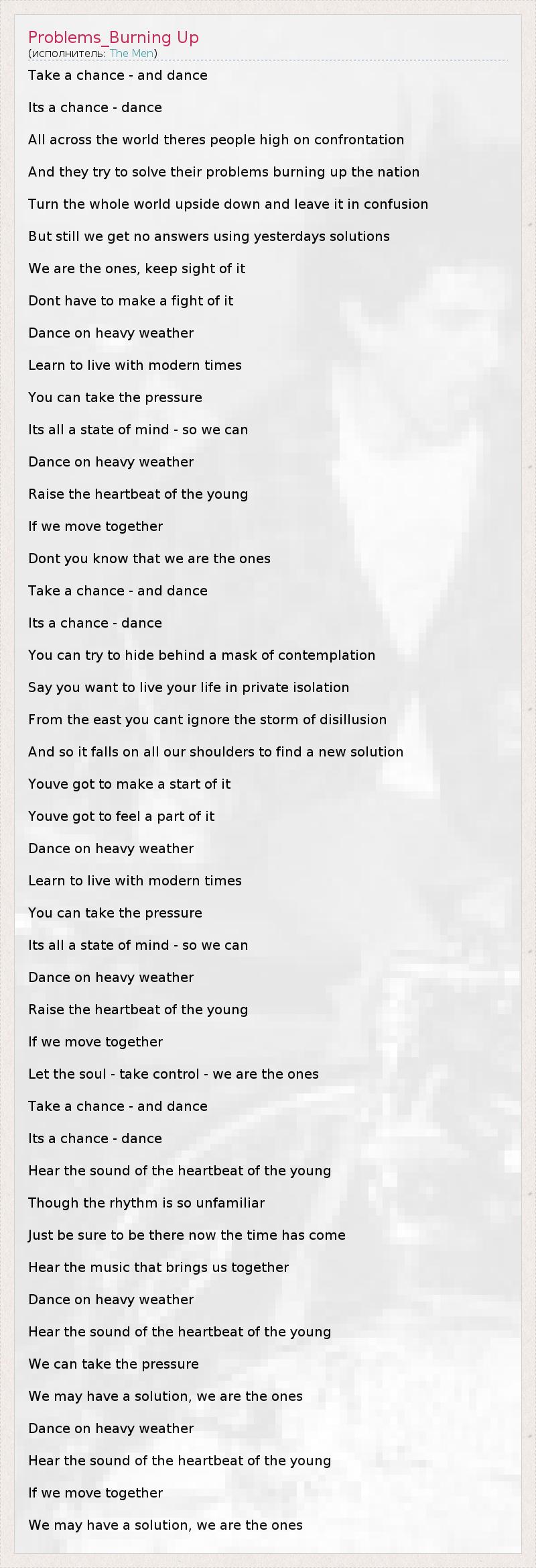 А как ты думаешь, о чем песня "Problems_Burning Up" ?
