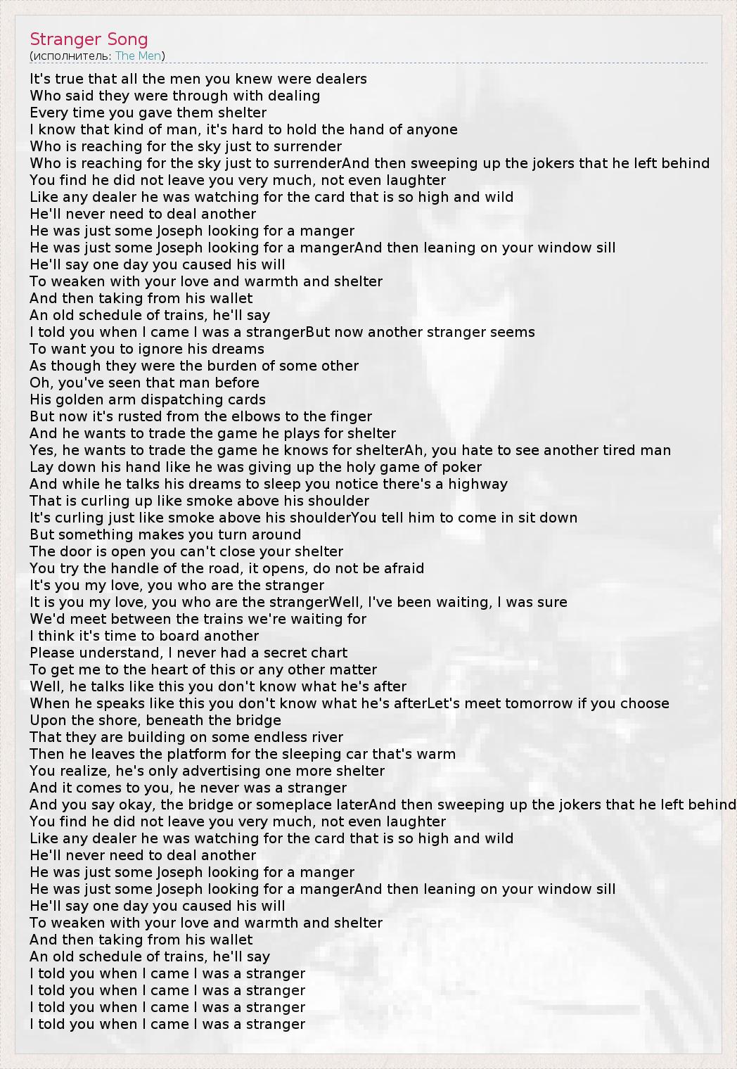 А как ты думаешь, о чем песня "Stranger Song" ?