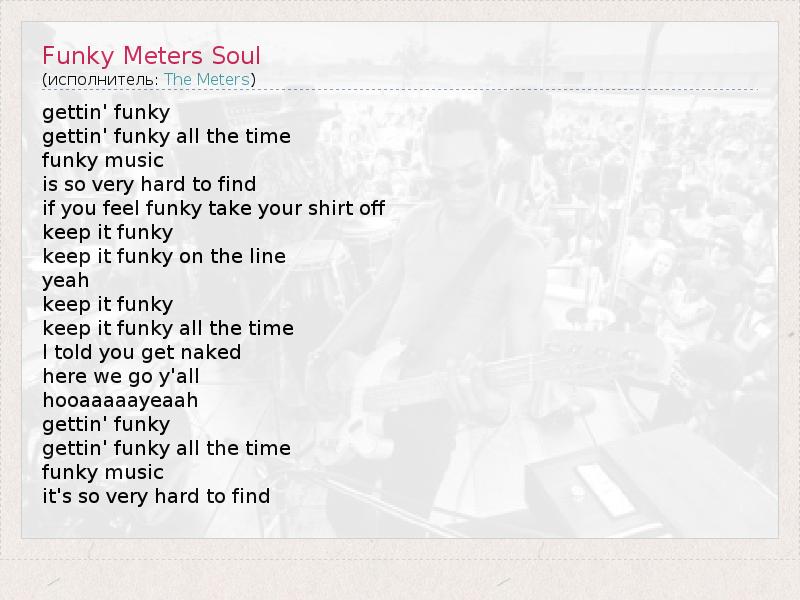 А как ты думаешь, о чем песня "Funky Meters Soul" ?