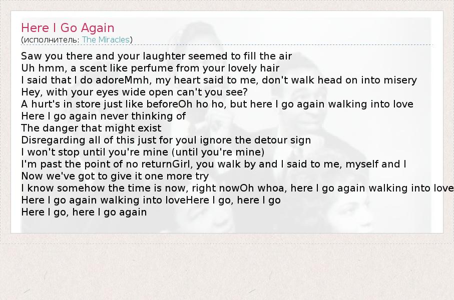А как ты думаешь, о чем песня "Here I Go Again" ?