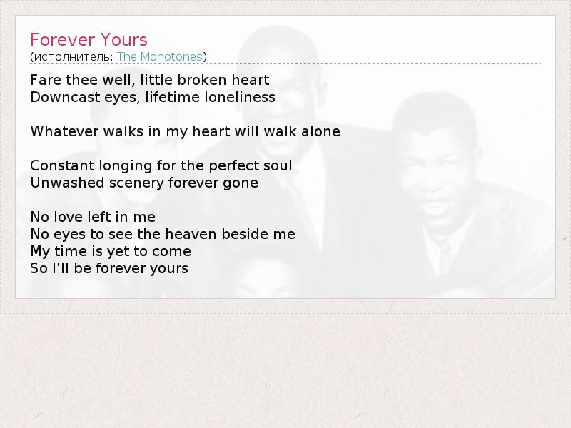 А как ты думаешь, о чем песня "Forever Yours" ?