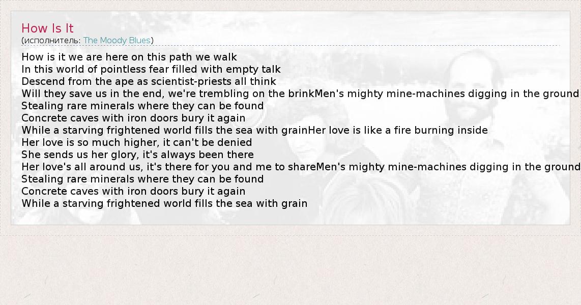 А как ты думаешь, о чем песня "How Is It" ?