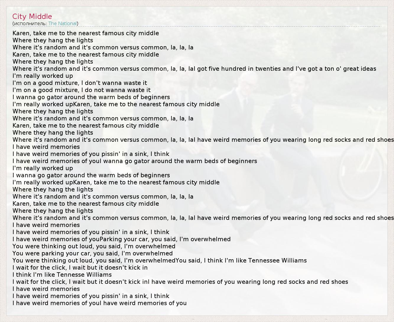 Where it's random and it's common versus common, la, la, laI have weird memories of you wearing long red socks and red shoes