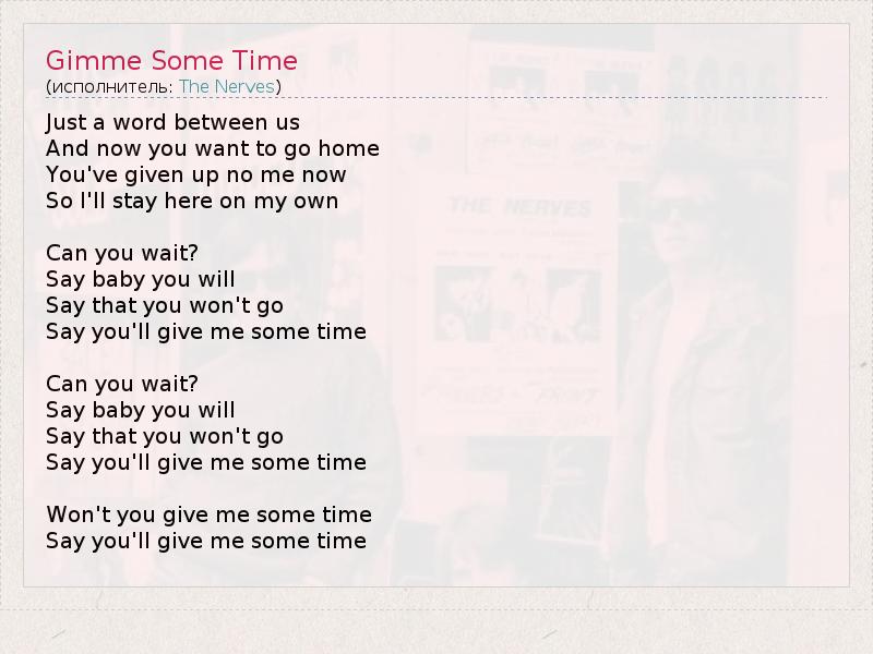 А как ты думаешь, о чем песня "Gimme Some Time" ?