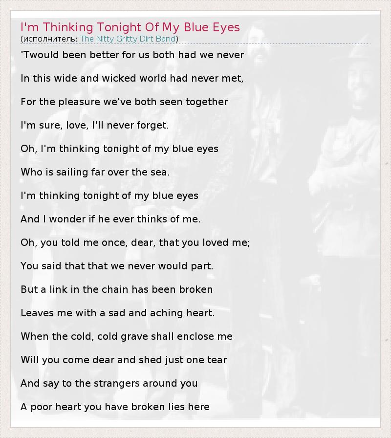А как ты думаешь, о чем песня "I'm Thinking Tonight Of My Blue Eyes" ?