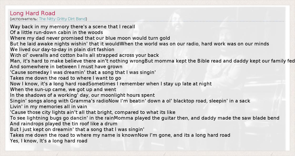А как ты думаешь, о чем песня "Long Hard Road" ?