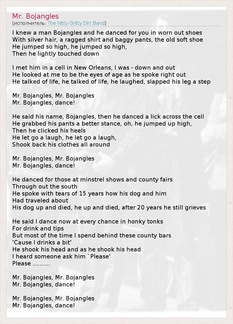 А как ты думаешь, о чем песня "Mr. Bojangles" ?