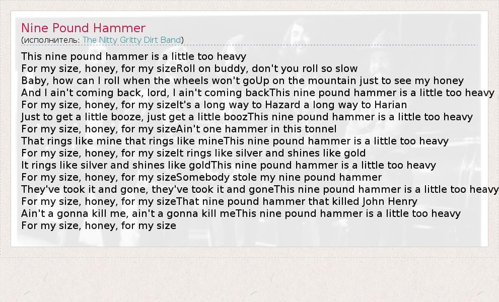 А как ты думаешь, о чем песня "Nine Pound Hammer" ?