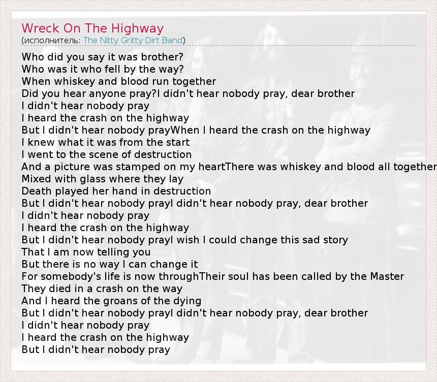 А как ты думаешь, о чем песня "Wreck On The Highway" ?