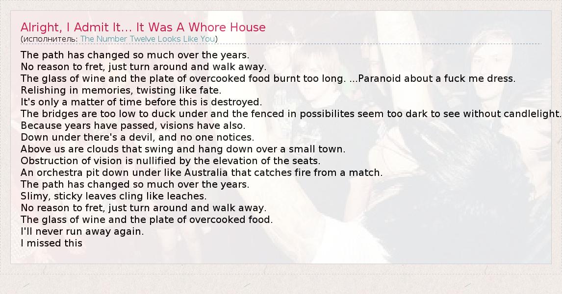 А как ты думаешь, о чем песня "Alright, I Admit It... It Was A Whore House" ?