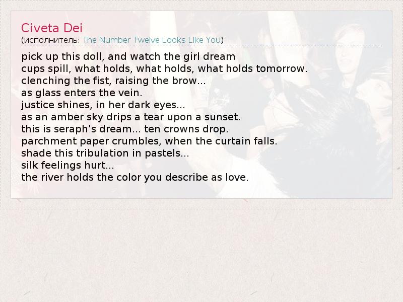 А как ты думаешь, о чем песня "Civeta Dei" ?